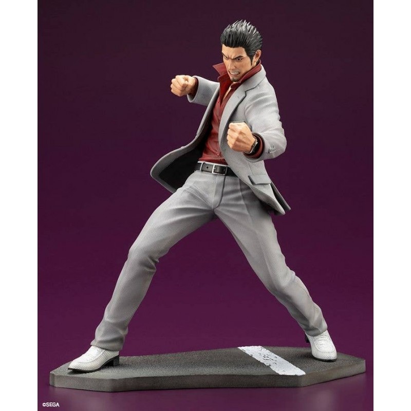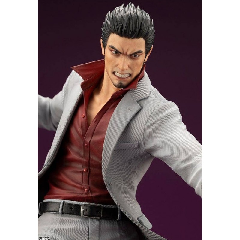 Descubra a impressionante figura de PVC de Kazuma Kiryu de 29 cm, um item indispensável para os verdadeiros fãs do universo 'Like a Dragon'. Esta estátua em escala 1/6 captura o carisma e a potência do personagem com uma expressão desafiadora e uma pose dinâmica pronta para a ação. Fabricada pela Kotobukiya, esta peça destaca-se pelos seus detalhes meticulosos, desde o elegante terno cinza e a camisa vermelha do personagem até a textura realista de seu cabelo e calçado.