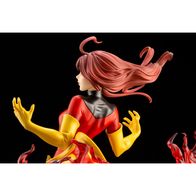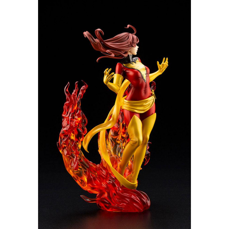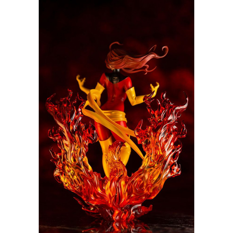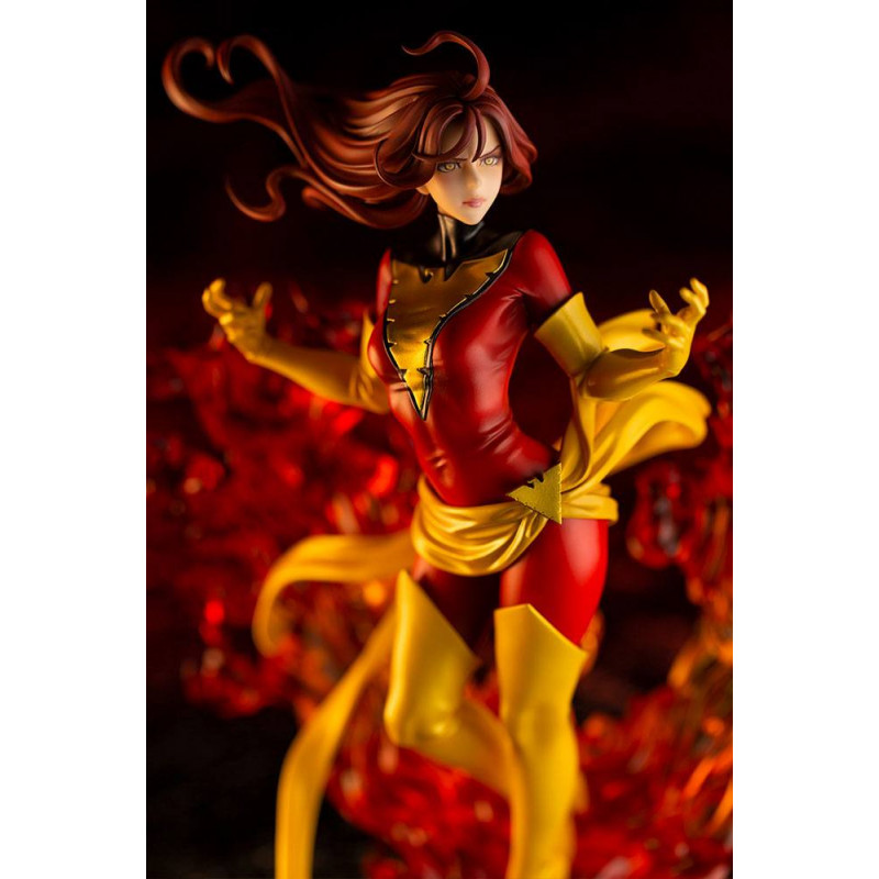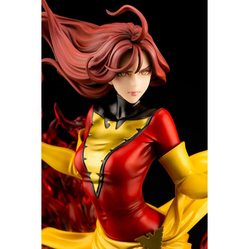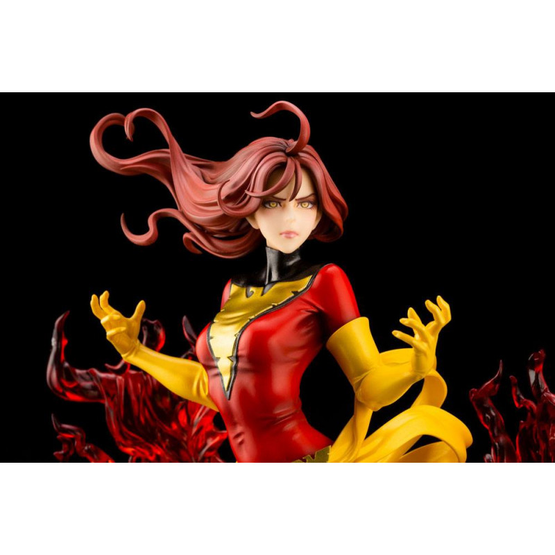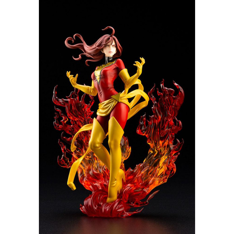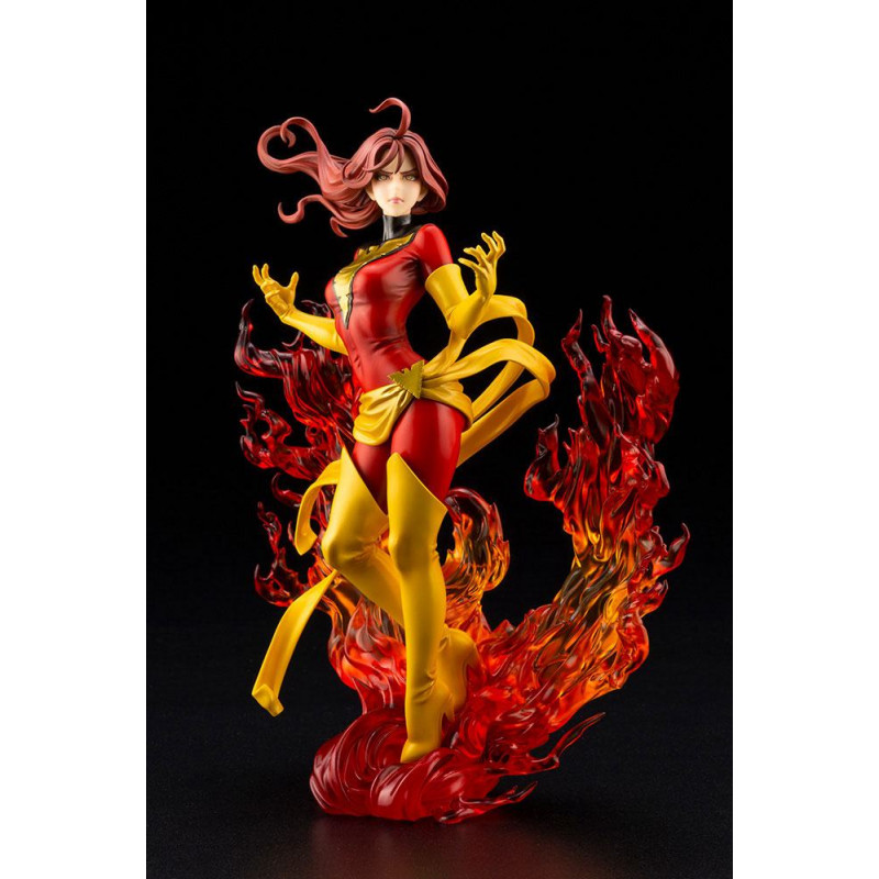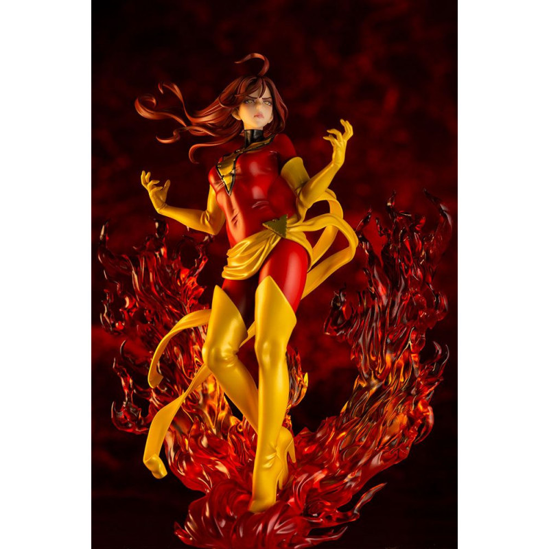 En esta ocasión nos traen a un a una de las superheroínas más reconocibles del mundo de Marvel, dentro de la Patrulla X o los X-men, la bella y poderosa Fénix Oscura, encarnada en Jean Grey y en su máximo esplendor, rodeada de llamas, ya con su traje rojo característico, después del clásico verde.
