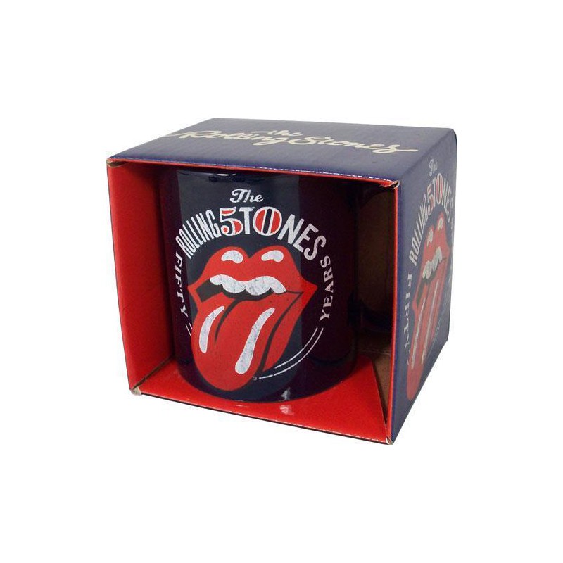 Se trata de una magnífica taza de cerámica de 320 ml de capacidad y resistente a lavavajillas y microondas, que debe ser un clásico en las casas de los aficionados al rock y a una de sus bandas más legendarias, The Rolling Stones, diseñada con motivo del 50 Aniversario de la banda en un elegante color azul marino.
