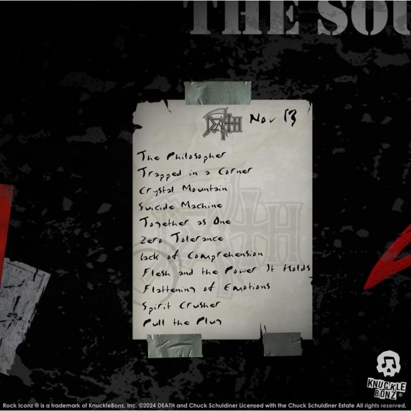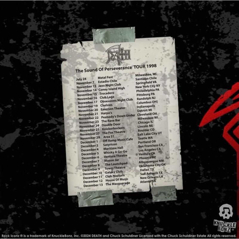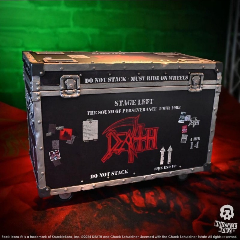 Reviva a magia da turnê The Sound of Perseverance de 1998 com esta deslumbrante estátua de colecionador de Death. Criada pela renomada linha Rock Ikonz On Tour da Knucklebonz, esta peça captura cada detalhe com precisão. A figura inclui um case de palco de poliresina, medindo 12 x 14 x 9 cm, imitando os utilizados nas turnês, enfatizando sua autenticidade e precisão.