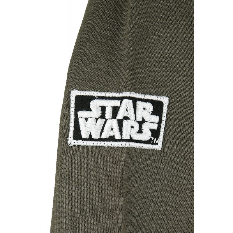 Se trata de una sudadera oficial fabricada 100% en algodón con una excepcional calidad en material y acabados, ideal para el día a día porque es de esas con capucha que le quedan bien a todo el mundo. Pero lo mejor es su fantástico diseño, en un color caqui que combina con todo y con un imponente dibujo de nuestro querido Baby Yoda, junto con el mítico logo de Star Wars. No dejes de mirar todas las fotos para que aprecies cada uno de sus cuidados detalles.