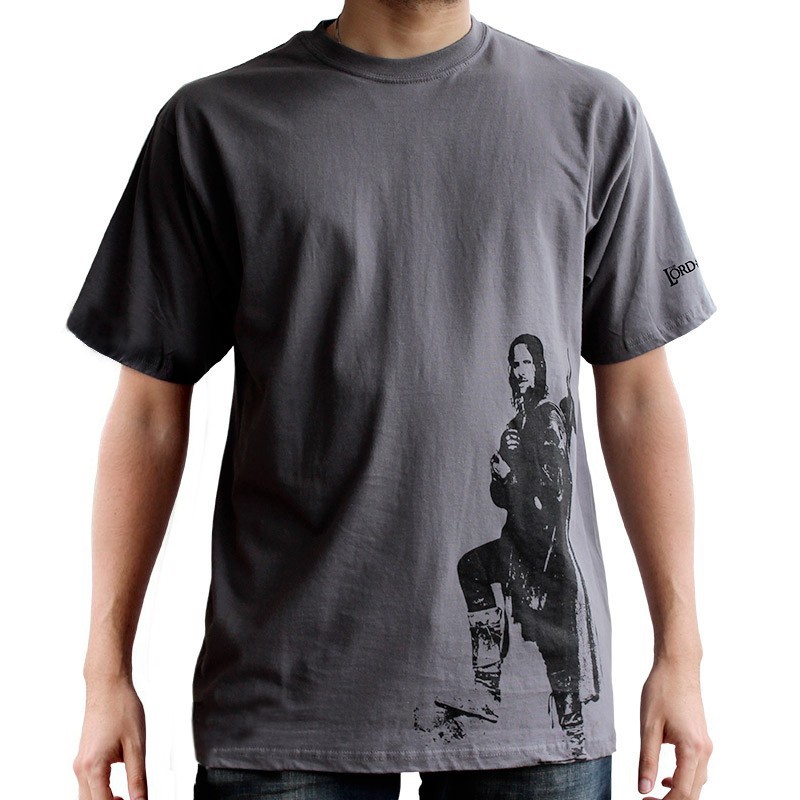 Su diseño es espectacular, con Aragorn como protagonista, interpretado genialmente por Viggo Mortensen, que aparece de perfil sobre un siempre elegante color gris oscuro. Cuenta con licencia oficial y en ella podemos ver también el logotipo en pequeñito de El Señor de los Anillos, colocado de manera discreta en una de las mangas.