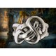 O Anel de Lindir, uma peça autêntica inspirada em O Hobbit, é feito de prata pura, capturando a essência mágica da Terra Média. Este anel, um tributo ao personagem Lindir, apresenta um design intricado entrelaçado que simboliza a cultura élfica. É fabricado com atenção excepcional aos detalhes, usando prata para fornecer um brilho duradouro e eterno.