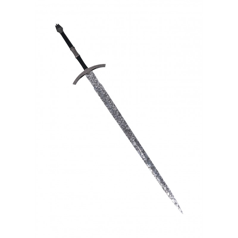 A Espada Rei Bruxo do Senhor dos Anéis é uma réplica impressionante, perfeita para colecionadores e fãs da saga. Esta espada mede um total de 137 cm, com uma lâmina de 100 cm de comprimento e uma espessura de 4,9 mm, confeccionada em aço com acabamento envelhecido que lhe confere um aspecto autêntico e rústico.