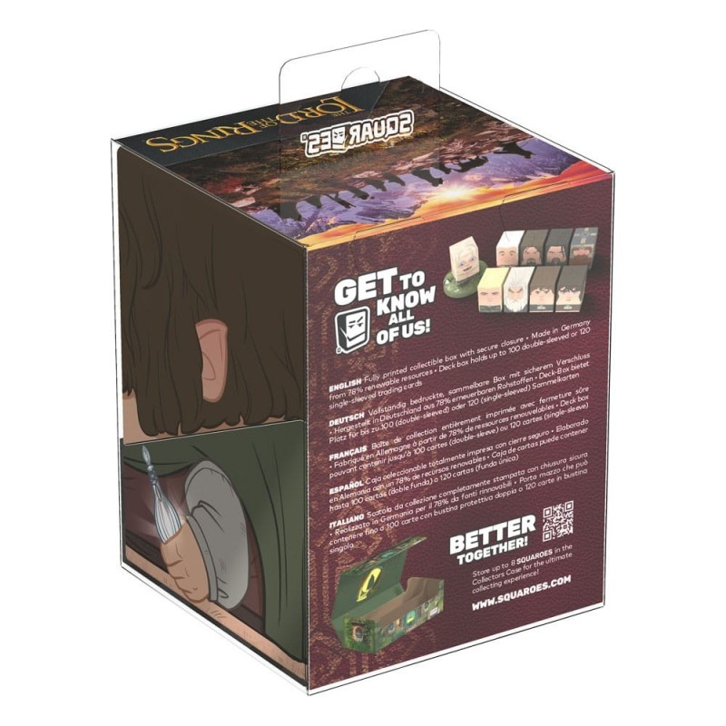 Descubra a Caixa Colecionável Frodo da edição O Senhor dos Anéis, um acessório perfeito para armazenar seus itens mais preciosos. Com um design totalmente impresso, esta caixa exibe o icônico rosto de Frodo, capturando a essência da aventura. Feita com 78% de recursos renováveis, esta caixa fabricada na Alemanha é não só ecológica como também eficiente, capaz de conter até 100 cartas com dupla capa ou 120 com capa única. Seu fecho seguro garante a proteção do conteúdo, seja cartas TCG, acessórios de jogos de tabuleiro ou qualquer item colecionável. Um presente ideal para os fãs do universo de Tolkien.