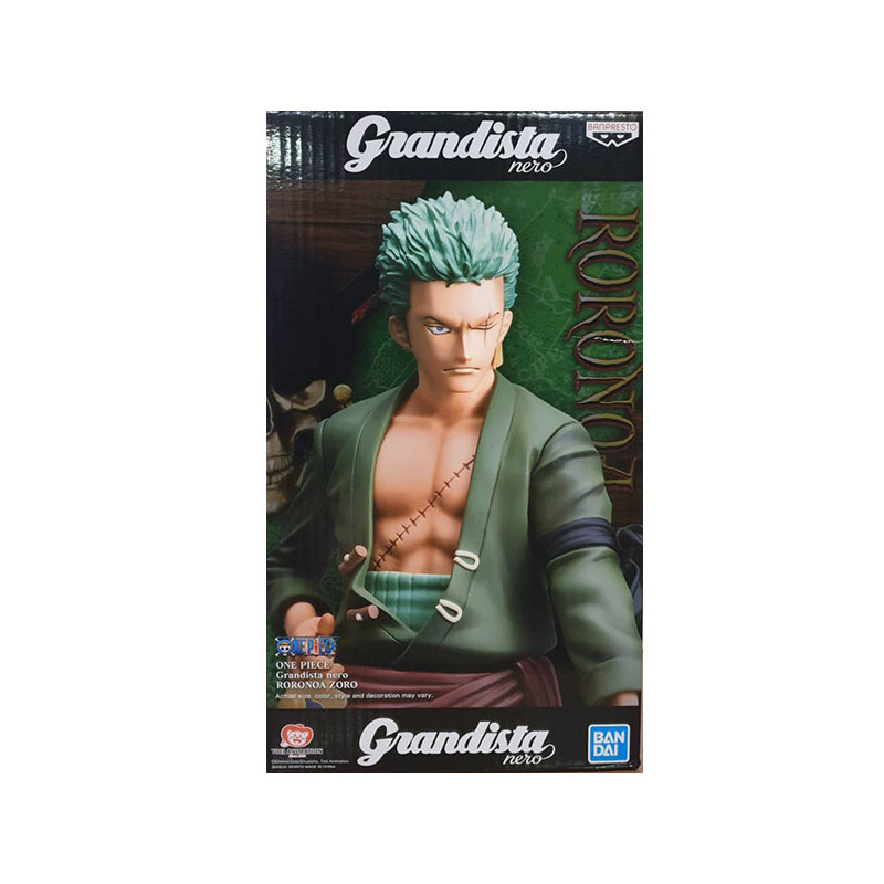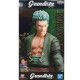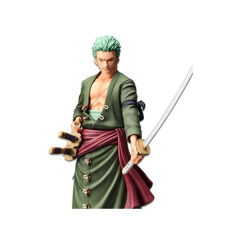 Esta é uma figura da prestigiada casa japonesa Banpresto, dentro da sua série Grandista, que não falta nenhum detalhe. É uma figura de cerca de 28 cm, feita em PVC de alta qualidade e representa perfeitamente Roronoa Zoro, com todos os detalhes que caracterizam este membro dos Piratas do Chapéu de Palha, desde o traje até à expressão ou musculatura. Também vem em uma caixa especialmente projetada para este item.