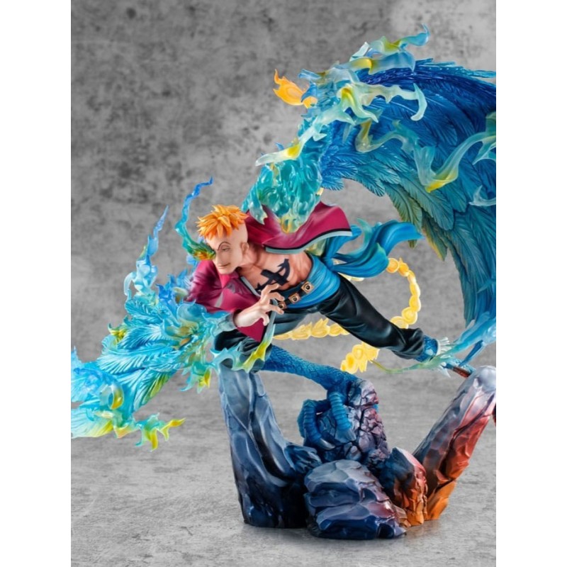 Esta estátua de 32 cm apresenta Marco the Phoenix, líder do primeiro grupo dos Piratas do Barba Branca, em uma pose dinâmica incrível. Feita de PVC de alta qualidade, a figura captura a essência do personagem de One Piece com detalhes meticulosos. A paleta de cores vibrantes, destacada pelos tons azul e amarelo que simbolizam o poder do fênix, é complementada por uma representação impressionante de chamas e movimento que cercam o personagem. A escultura fiel e a atenção aos detalhes fazem desta estátua um item indispensável para qualquer colecionador de mangá e anime. Produto oficial da linha P.O.P. MAS Maximum de MegaHouse, garante autenticidade e qualidade. Perfeito como presente original ou para expandir sua coleção pessoal.
