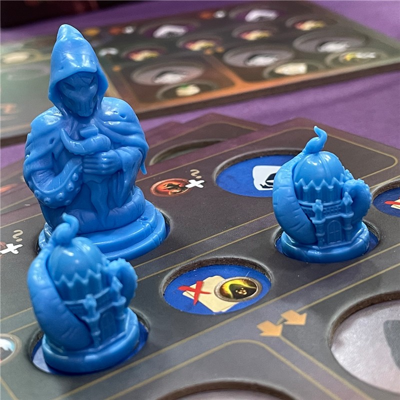 Chants for the Old Ones é um jogo de tabuleiro fascinante inspirado no universo de H.P. Lovecraft, onde os jogadores formam uma seita para invocar um Primordial. A caixa do jogo apresenta um design de tema escuro, com ilustrações de criaturas lovecraftianas e uma cultista central, sugerindo mistério e aventura. Dentro, você encontrará componentes de alta qualidade como miniaturas detalhadas de cultistas e templos, cartas temáticas e um tabuleiro de jogo reversível. As miniaturas vêm em várias cores, adicionando variedade e dinamismo a cada partida. Os jogadores devem recrutar seguidores e expandir sua influência em Arkham, Innsmouth e Kingsport, usando cartas de poder, conhecimento e sacrifício para invocar criaturas temíveis. Perfeito para fãs do arcano e para aqueles que apreciam um desafio estratégico em um mundo onde a humanidade é apenas uma sombra.