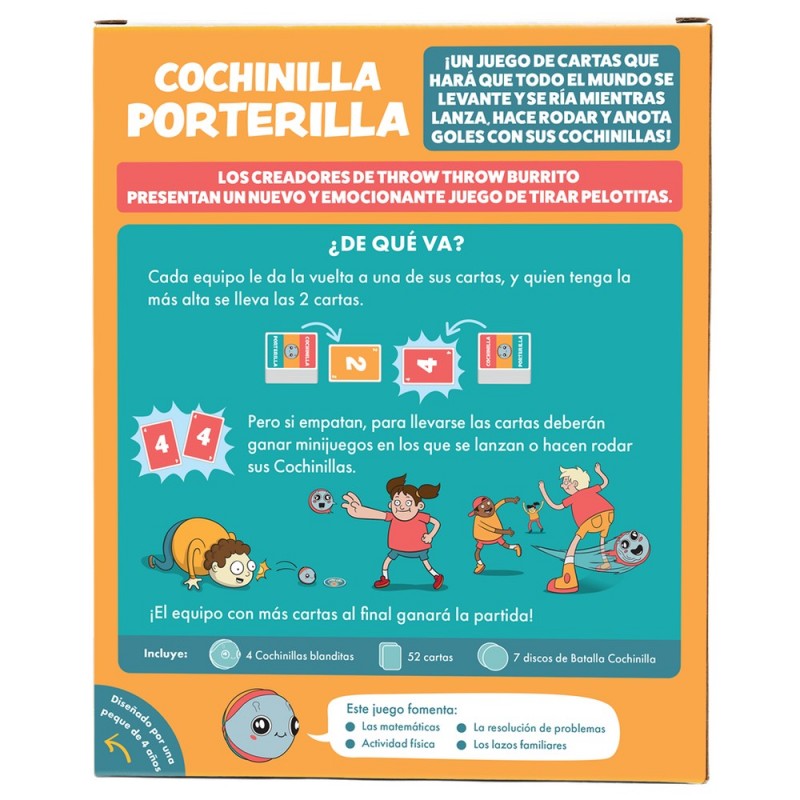 Ideal para crianças a partir de 4 anos, este jogo fomenta habilidades matemáticas, resolução de problemas e atividade física, além de fortalecer os laços familiares. Cochinilla Porterilla é o presente perfeito para qualquer ocasião ou um capricho garantido para trazer um sorriso.