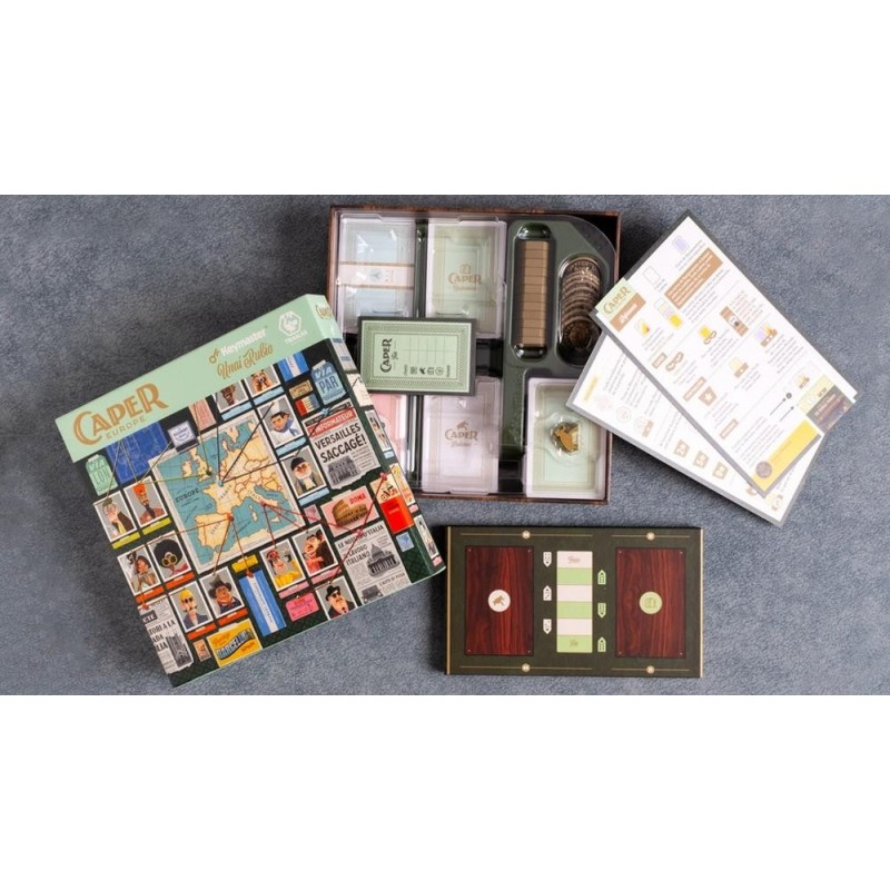Merja no intrigante mundo do crime com Caper: Europe, um emocionante jogo de tabuleiro que o leva às principais cidades europeias. Enfrente um rival em um duelo de inteligência, onde você deve recrutar a quadrilha de ladrões mais astuta e equipá-los com gadgets avançados para executar assaltos ousados. A cada turno, escolha estrategicamente suas cartas e supere seu oponente para coletar os itens mais valiosos. Ideal para dois jogadores, este jogo promete horas de diversão e competição.