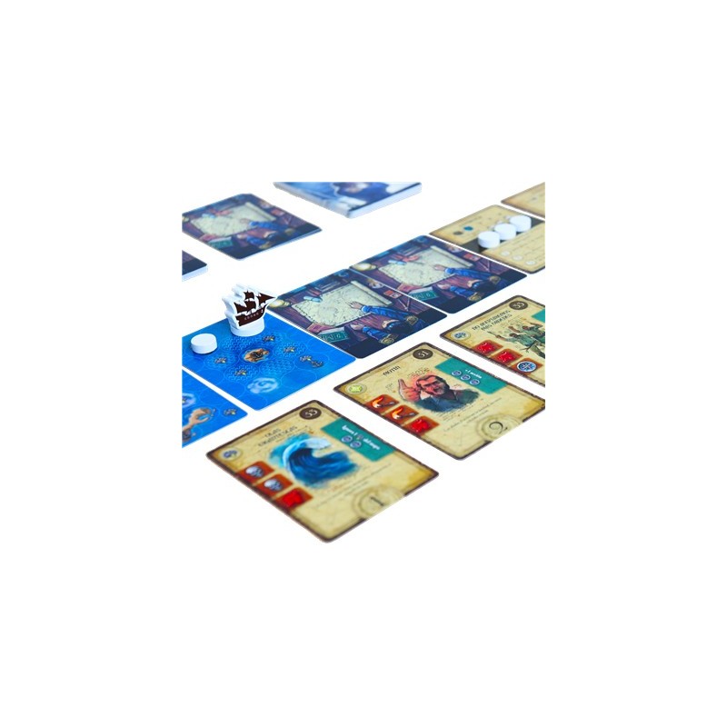 Inclui 130 cartas com diversos eventos e personagens, um barco de madeira, 30 fichas para gestão de recursos, e um livro de campanha para enriquecer a narrativa de suas decisões. As ilustrações evocativas e materiais de qualidade garantem uma experiência imersiva desde o primeiro jogo.