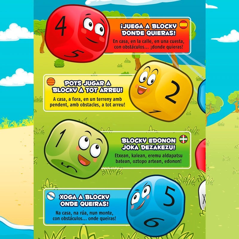Descubra o Blocky, o jogo de tabuleiro familiar perfeito para se divertir em qualquer lugar. Inclui 9 dados gigantes e vibrantes que adicionam dinamismo e diversão. O conjunto é composto por um quadro, um marcador apagável para manter a pontuação e uma bolsa de transporte prática. Cada partida é diferente, pois você pode jogar em casa ou ao ar livre, mesmo em terrenos inclinados ou com obstáculos. O primeiro a alcançar 40 pontos vence!