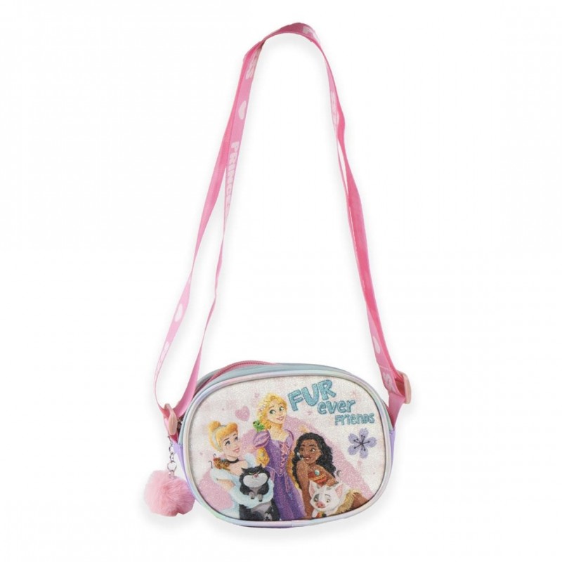 Descubra a bolsa fantasia Princess, um acessório ideal para meninas que amam princesas. Esta bolsa possui um design encantador com fundo brilhante mostrando princesas icônicas, cercadas por corações e um texto divertido dizendo 'FUR ever friends'. Feita de 80% poliéster e 20% PU, garante durabilidade e resistência para o uso diário.