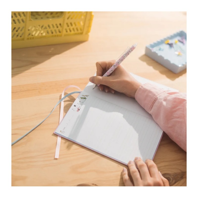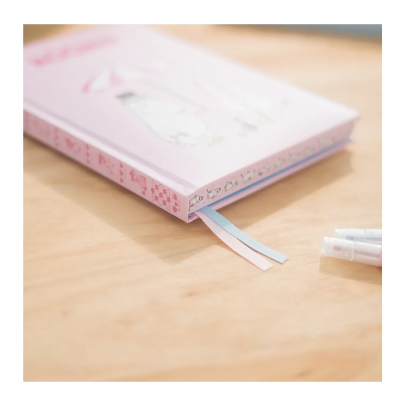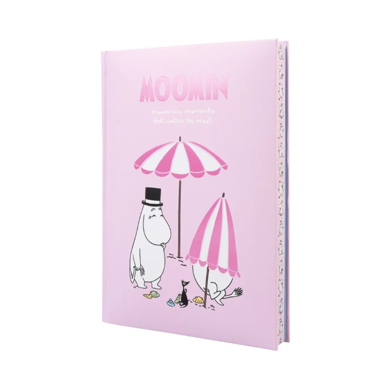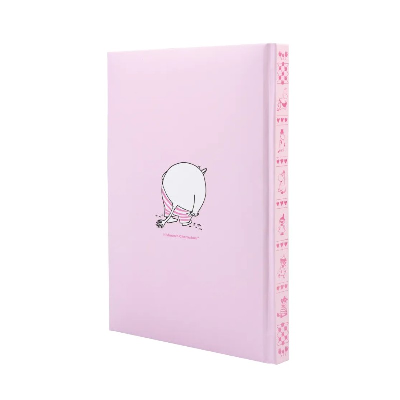 Descubra o caderno premium A5 Moomin, perfeito para quem ama detalhes únicos. Sua capa dura com efeito acolchoado em tons de rosa oferece proteção duradoura e um design encantador, adornado com ilustrações dos adorados personagens Moomin. Com dimensões de 14,8 x 21 cm, é ideal para levar a qualquer lugar.