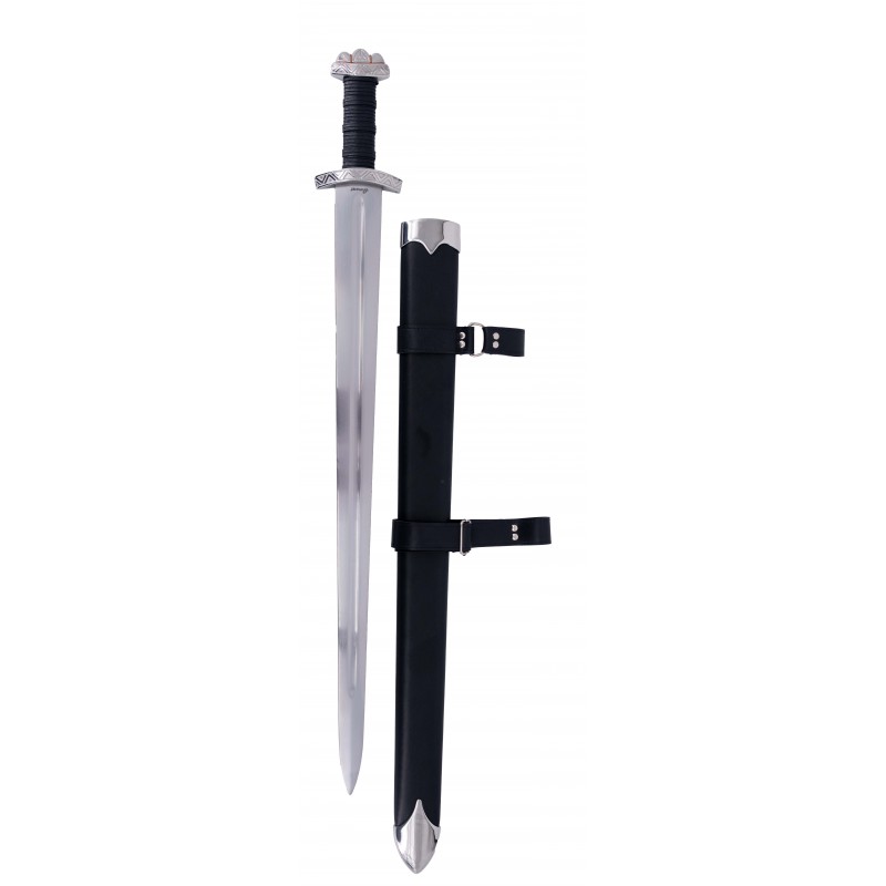 O cabo, envolto em couro, oferece uma pega firme e confortável, enquanto a bainha de madeira revestida em couro com suportes metálicos assegura um armazenamento seguro. Com um peso de 1173 gramas sem a bainha, esta espada não é apenas uma peça de colecionador, mas também um presente original para qualquer amante da cultura viking.