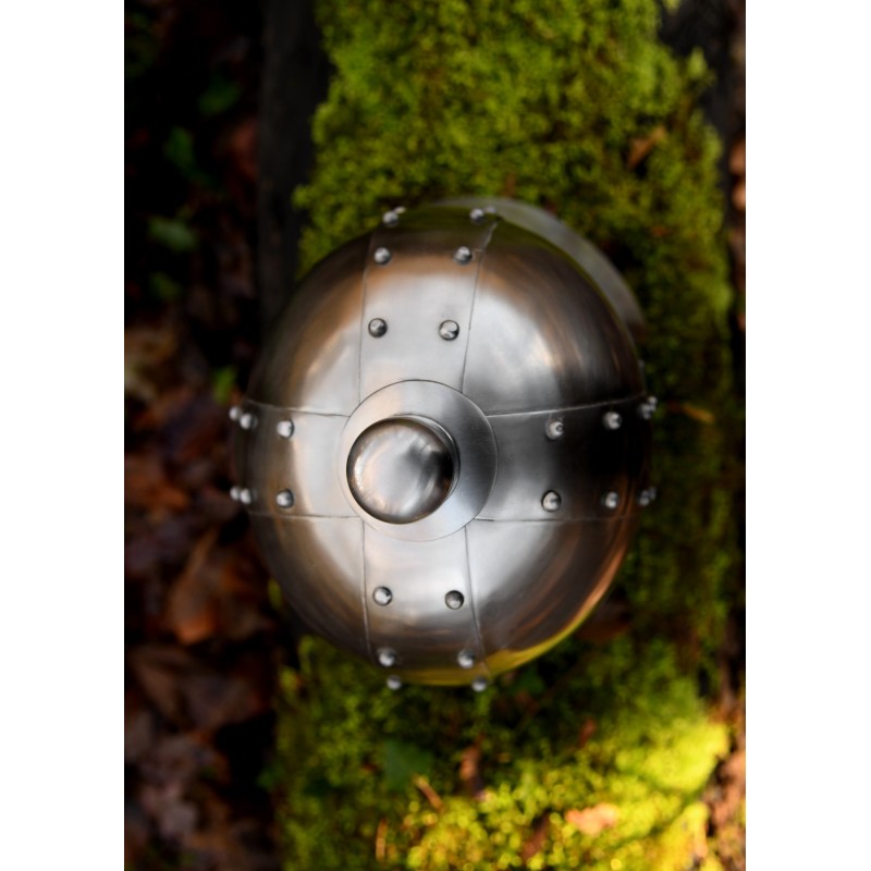 Este impressionante capacete do Rei Arthur é uma réplica de um spangenhelm medieval antigo, projetado para oferecer autenticidade e resistência. Feito de aço de aproximadamente 1.2 mm, este capacete não só é durável, mas também captura uma estética histórica incomparável.