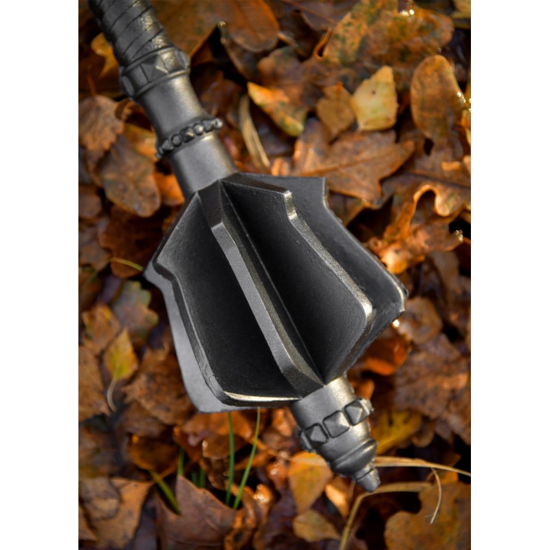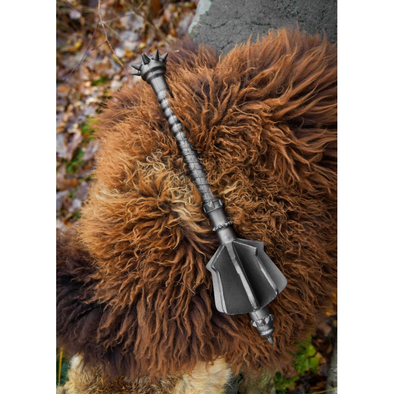 O Martelo de Guerra LARP Malrik é a encarnação da força bruta, criado para os entusiastas de LARP que desejam deixar uma marca duradoura em cada batalha. Feito de espuma de poliuretano de alta qualidade, este martelo negro de 44 cm de comprimento e 145 g de peso oferece um design realista inspirado nas maças medievais. Sua aparência impressionante, com superfícies amplas e rebites estilizados, faz dele a escolha ideal para qualquer personagem, seja um cavaleiro honrado ou um mercenário ambicioso. A empunhadura de 19 cm é detalhadamente elaborada para proporcionar uma aderência firme durante os combates prolongados. O pomo com rebites pontiagudos completa seu design feroz e pronto para a batalha.