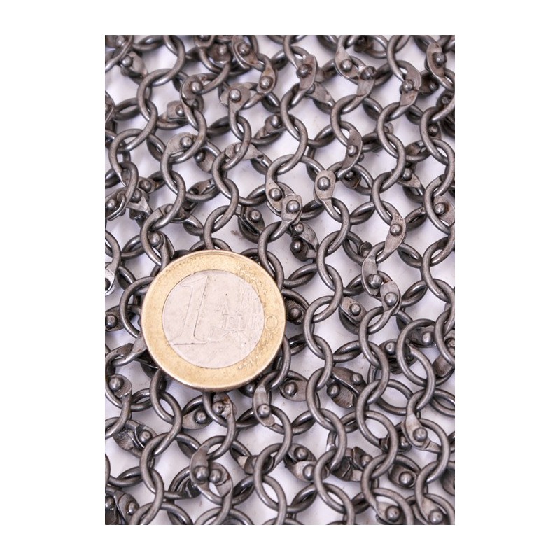 O avental de cota de malha RRR é um acessório histórico perfeito para recriadores medievais e colecionadores de armaduras. Apresenta anéis redondos rebitados à mão formando uma trama 4 em 1, conhecida como RRR (Round Ring Riveted), proporcionando proteção autêntica e eficaz.