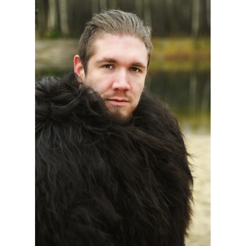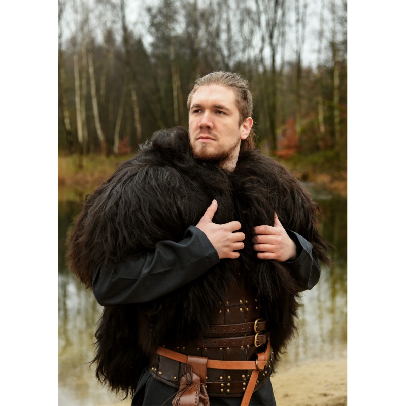 Imersa-te no mundo selvagem dos mitos nórdicos com a capa de pele Berserker. Perfeita para entusiastas dos vikings, este acessório impressionante permite-te encarnar um guerreiro destemido ou um poderoso Jarl. Com uma cor preta intensa e um comprimento de pelo suave de 10 a 15 cm, esta capa tem aproximadamente 60 cm de largura e 130 cm de comprimento, pesando 1,3 kg.