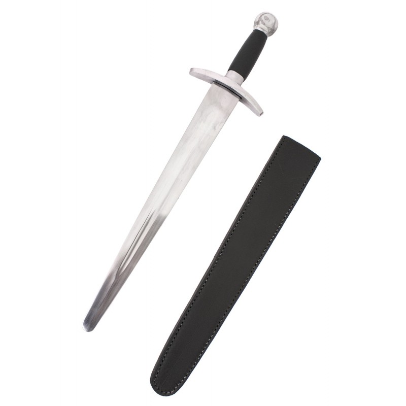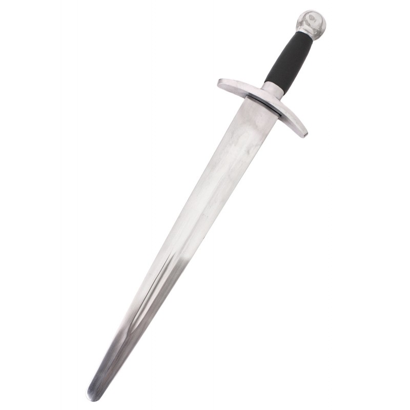 A adaga medieval da Battle-Merchant é uma peça impressionante para entusiastas de reconstituições históricas e treinamentos. Sua lâmina forjada à mão em aço carbono possui uma forma tradicional, e seu tamanho de 54,5 cm é ideal para práticas seguras, graças à sua borda cega de 3-4 mm.