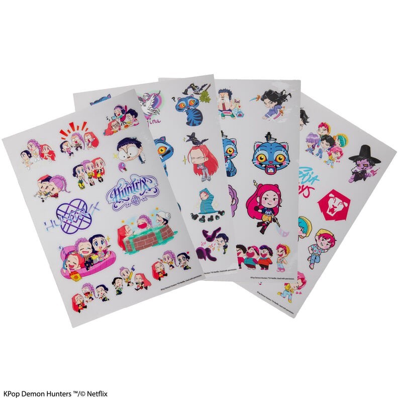 Descubra o Pack de Autocolantes de 4 Folhas Kpop Demon Hunters da CINEREPLICAS, uma coleção licenciada oficialmente, perfeita para qualquer fã. Este conjunto inclui quatro folhas repletas de autocolantes coloridos e detalhados com personagens da série Kpop Demon Hunters. Perfeitos para personalizar os seus cadernos, portáteis ou qualquer acessório, estes autocolantes são um presente ideal ou um miminho pessoal. Qualidade superior e designs originais garantem um produto que se destaca pelo seu estilo único e vibrante.