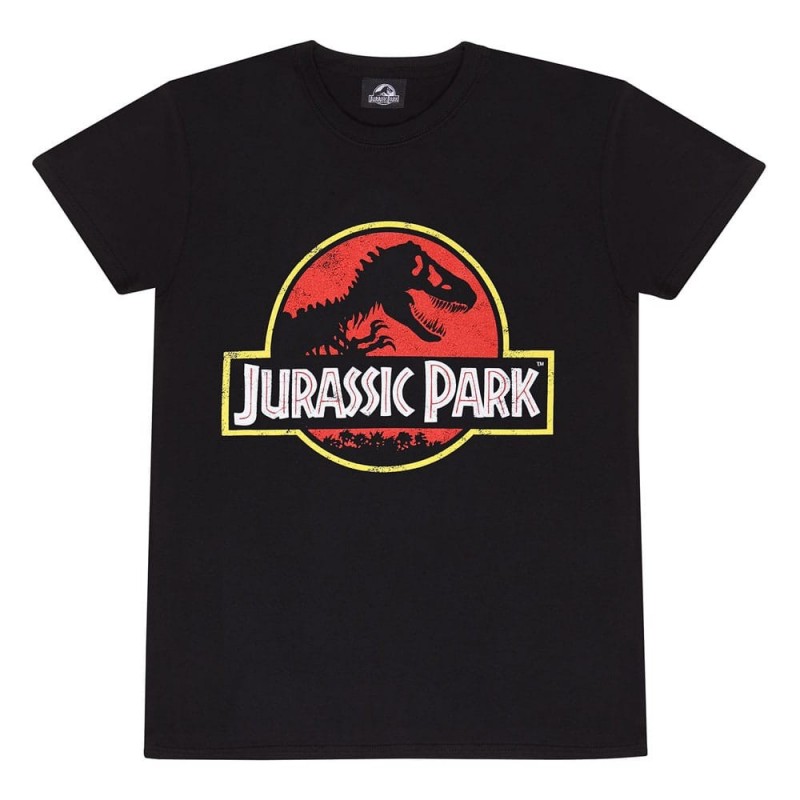 Mergulhe na nostalgia com esta camiseta do Jurassic Park que apresenta o icônico logo clássico em cores vibrantes. Esta peça preta homenageia o clássico cinematográfico que marcou gerações. Feita de 100% algodão, garante um conforto incomparável e é perfeita para fãs do universo dos dinossauros.
