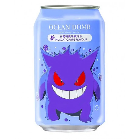 Se trata de la bebida Ocean Bomb, con un irresistible sabor a uva y cuyo envase está inspirado en Gengar, este pokemon tan especial tipo fantasma y veneno, al que vemos aquí con su sonrisa maliciosa y ese color igualito al de las uvas. Además, es un refresco fabricado en Japón y si has probado otros refrescos japoneses ya sabes lo que eso significa: es una explosión de sabor.