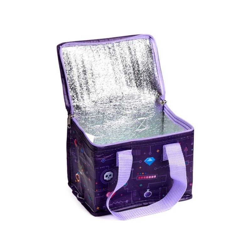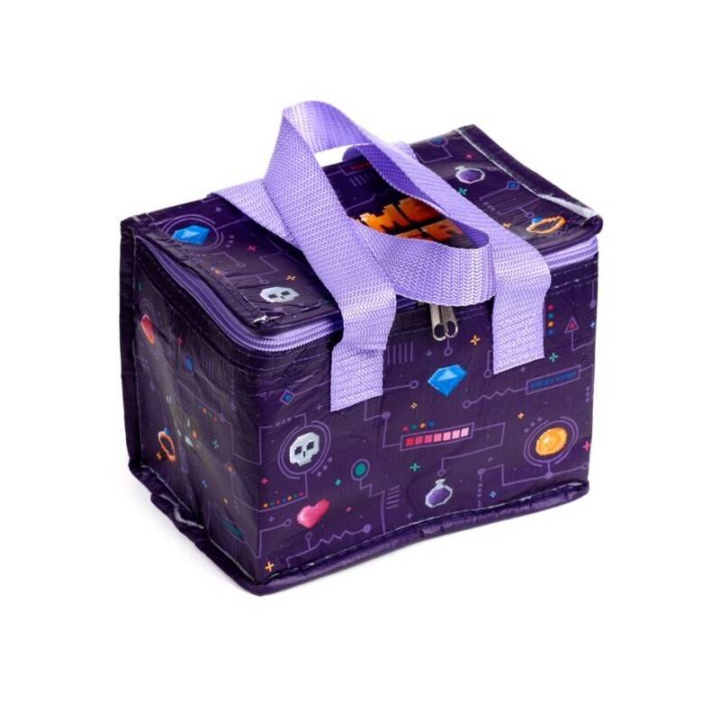Imersa-se no mundo do retrogaming com a encantadora bolsa térmica 'Game Over'. Seu design pixelizado evoca a nostalgia dos consoles clássicos, com ícones como o controle NES, Game Boy e as lendárias máquinas de arcade.