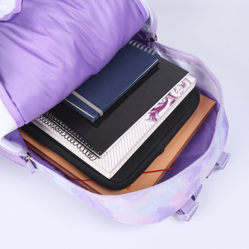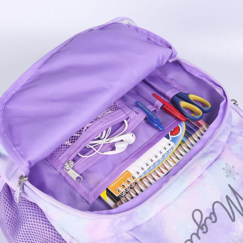 Mas o melhor é sem dúvida o seu desenho espectacular, com um alegre impresso com tons azul e roxo com um ar gelado, um desenho de Elsa mais uma estrela e detalhes brilhantes