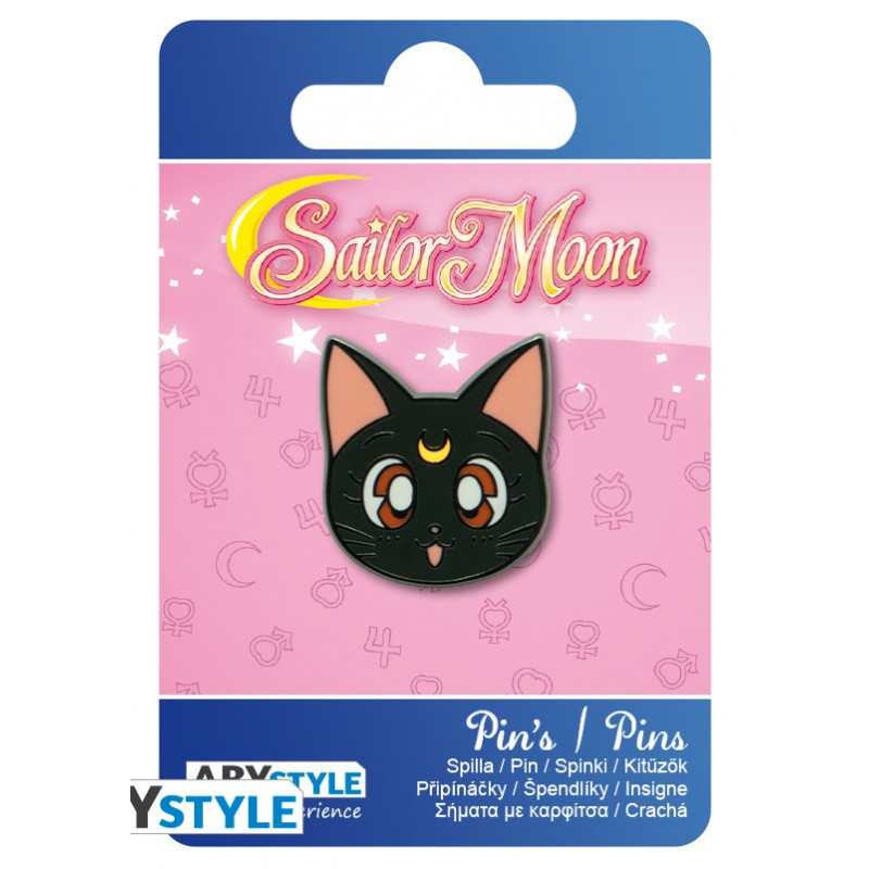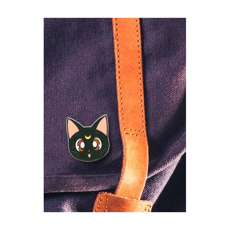 Se trata de un pin de 3,4 x 2,7 cm con un diseño genial y unos acabados estupendos, que es una perfecta reproducción de ese emblema que representa a Luna, la adorable gatita negra que da consejos a Bunny en Sailor Moon. Gracias a que está fabricado en metal, el nivel detalles y pintura es absolutamente excepcional.