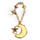 Se trata de un complemento elegante y divertido fabricado con una excelente calidad tanto de acabados como de material y diseño. Tiene un tamaño aproximado de 11 x 4 cm, cadenita incluída, y sorprende por la calidad del corte, su brillantez y la cantidad de detallitos que tiene, con varios elementos brillantes incorporados. La luna está esmaltada en color amarillo con purpurina verde, que destaca cuando le da luz directamente. No dejes de mirar las fotos para no perderte ningún detalle.