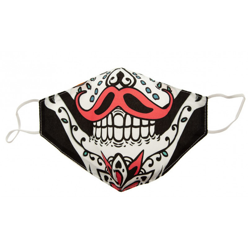 Y ya que tenemos que llevar mascarilla para protegernos a nosotros y a los demás... al menos hagámoslo con un poquito de estilo, ¿no? Esta mascarilla tiene un diseño homenaje a esa estética tan genuina de las calaveras mexicanas y el Día de Muertos.
