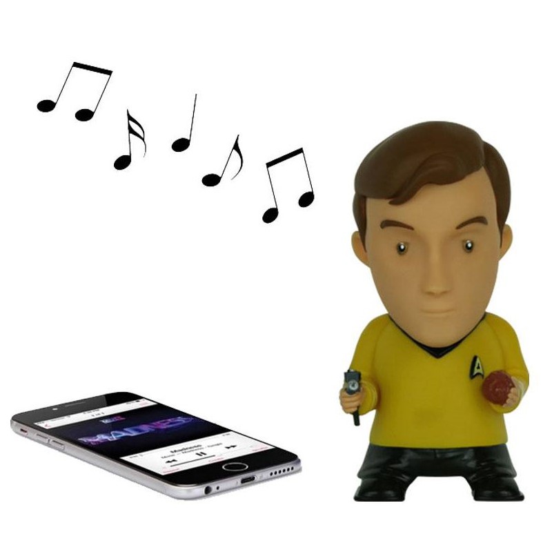 Un figura genial y un regalo práctico y original para aquellos amantes de Star Trek y Kirk... y también de escuchar música en cualquier sitio.