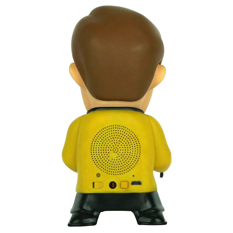 Tiene una calidad de sonido fantástica para su pequeño tamaño y funciona con un cable USB con el que se puede cargar. Mide en torno a 16 cm de alto y es, además de un altavoz, una estupenda figura que reproduce de forma muy graciosa al Capitán Kirk, captando perfectamente la esencia de este personaje. Y no solo eso, este artículo incluye también varias frases originales del personaje.