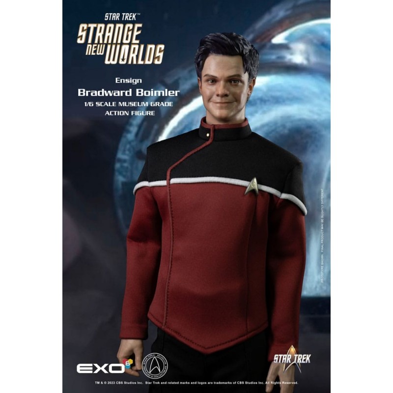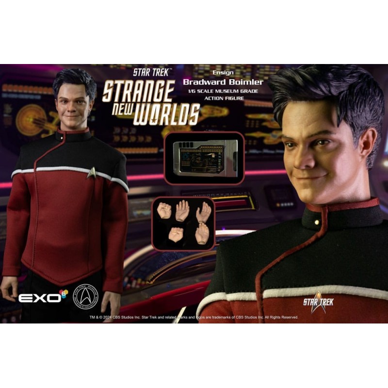 Descubra a figura articulada de Ensign Boimler da série 'Star Trek: Strange New Worlds'. Com escala de 1/6, este colecionável detalhado mede aproximadamente 30 cm, ideal para qualquer fã de Star Trek. Fabricado pela EXO-6, esta peça oficial inclui vários acessórios, permitindo recriar cenas icônicas. O traje é fiel ao original, com detalhes precisos no uniforme vermelho e preto característico e no emblemático emblema da Frota Estelar. Perfeito tanto para exibir quanto para presentear os amantes do universo Star Trek.