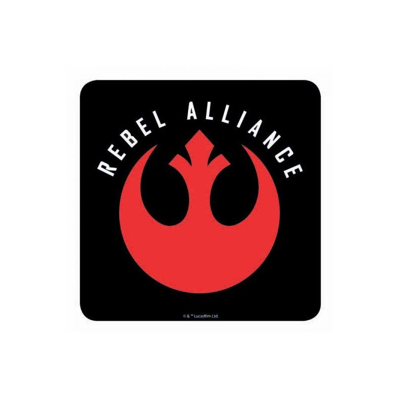 Se trata de 6 posavasos que son una maravilla tanto por la calidad del material, como los acabados y los detalles de la serigrafía. Están hecho en melamina resistente, con una base de corcho. Y su diseño es todo un homenaje a la Alianza Rebelde, que lucha contra la tiranía del Imperio, y cuyo símbolo característico aparece en estos posavasos reproducido en color rojo sobre negro. Es un producto oficial de Disney-LucasFilm.