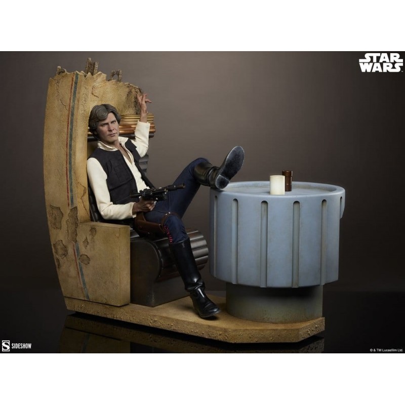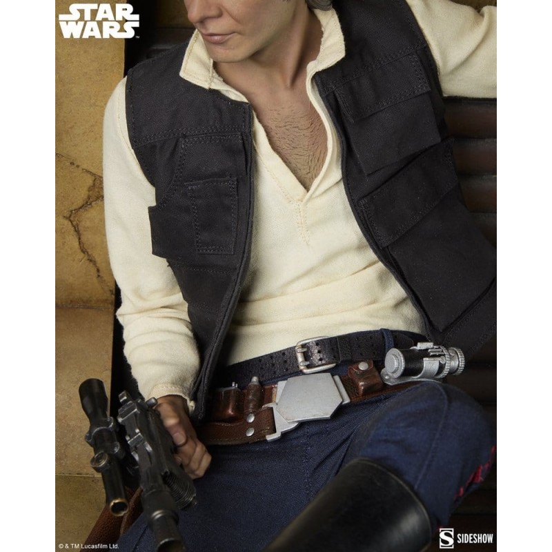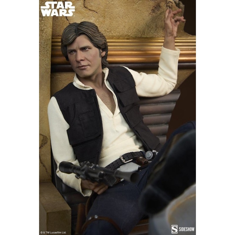 Descubra a estátua premium de Han Solo da Sideshow Collectibles, uma obra-prima da linha Premium Format Mixed Media. Com aproximadamente 31,8 x 33,3 x 18,5 cm, esta estátua captura perfeitamente a essência do icônico personagem de Star Wars. Fabricada em poliresina de alta qualidade, representa Han Solo recostado em uma cadeira com seu blaster característico.