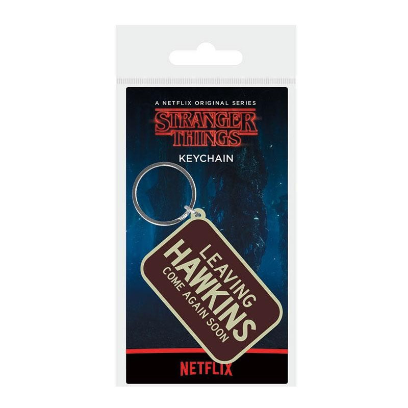 Es un llavero fabricado en caucho de alta calidad, lo que le confiere un tacto de goma realmente agradable además de que se consigue un tamaño razonable y cómodo de llevar en el bolsillo por que pesa poquísimo. Y no te pierdas su diseño, que representa ese cartel en la carretera que ves al dejar atrás Hawkings, el pueblo en el que suceden las historias de Stranger Things. Mide aproximadamente 4,5 x 6 cm y sorprende por la calidad de su anilla de la que fácilmente se sacan o meten las llaves y que te permitirá colgarlo sin problemas de bolsos o mochilas.