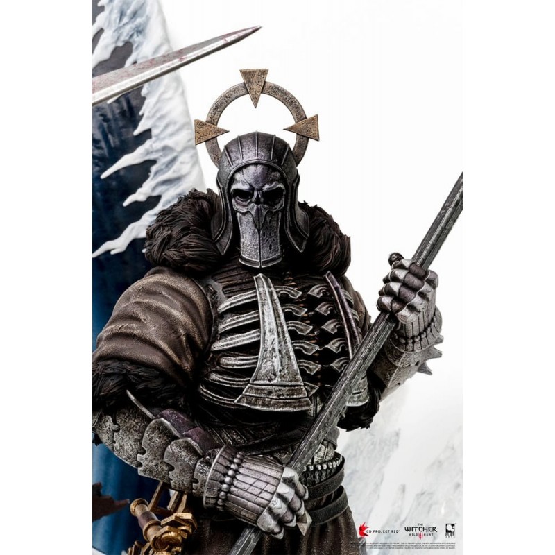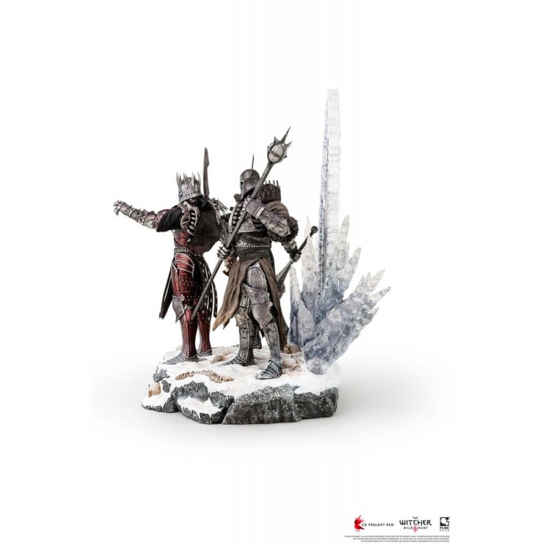 Imersa-se na deslumbrante The Witcher 3: Wild Hunt com esta estátua em escala 1:6, uma obra-prima para colecionadores. Este diorama de polirresina ilumina a presença feroz de Eredin, Imlerith e Caranthir, os temidos comandantes da Caçada Selvagem. Cada figura é esculpida com precisão, mostrando suas armaduras emblemáticas e posições imponentes. O portal detalhado atrás deles evoca o vasto e gélido universo do jogo, enquanto a base, cheia de restos de conquistas, adiciona um toque épico.