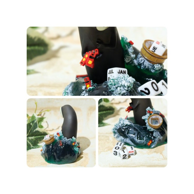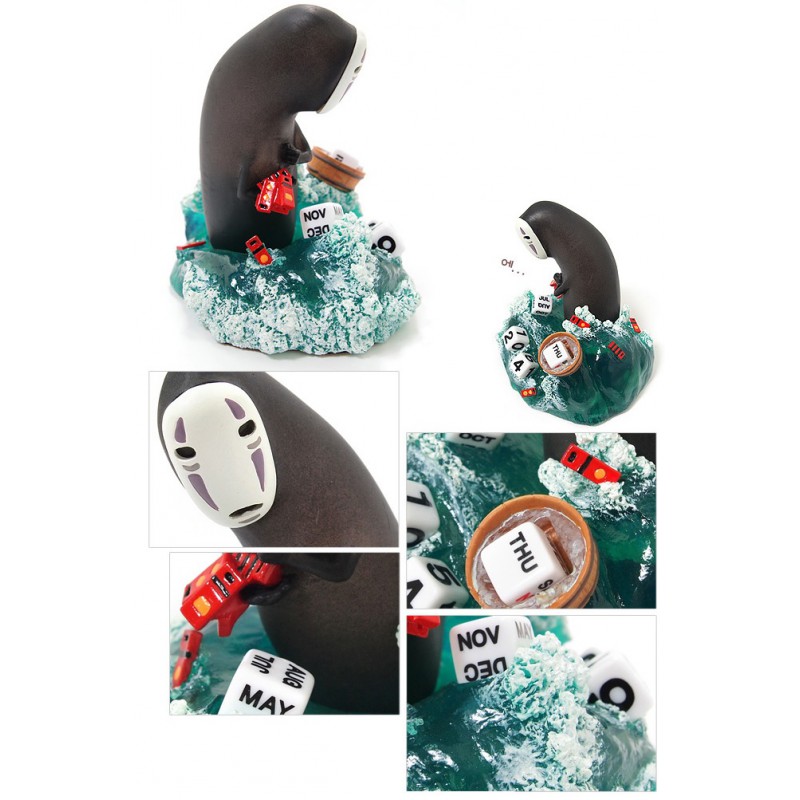 Pero lo mejor de todo es su diseño, con un espíritu "Sin Cara" mirando atento como pasa el tiempo en una inquietante pose que recuerda a las apariciones estelares de este personaje en la genial película de Miyazaki, El viaje de Chihiro.