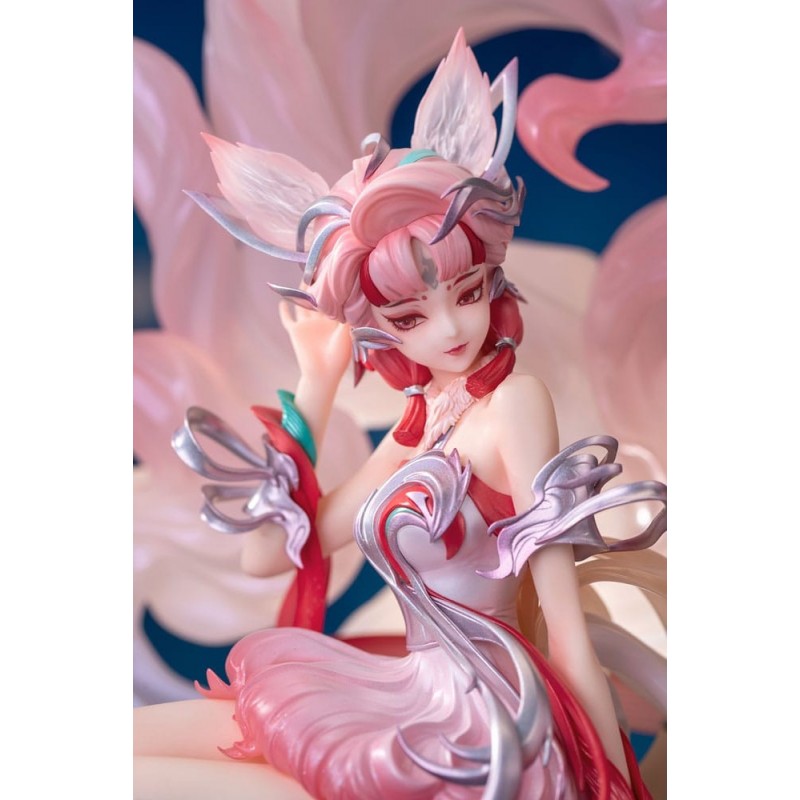 Honor of Kings PVC Statue 1/7 Qingqiu Nine-Tailed Fox Ver. 28 cm é uma obra-prima da coleção dedicada aos fãs de jogos de vídeo e arte figurativa. Esta impressionante estátua, criada por Myethos, capta a essência da personagem Qingqiu com um nível de pormenor surpreendente.