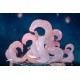 A base sobre a qual Qingqiu repousa é cuidadosamente esculpida para simular um ambiente aquático com pormenores azuis e roxos, complementando na perfeição a figura central. Junto a ela, uma pequena lanterna confere um toque de serenidade e encanto.