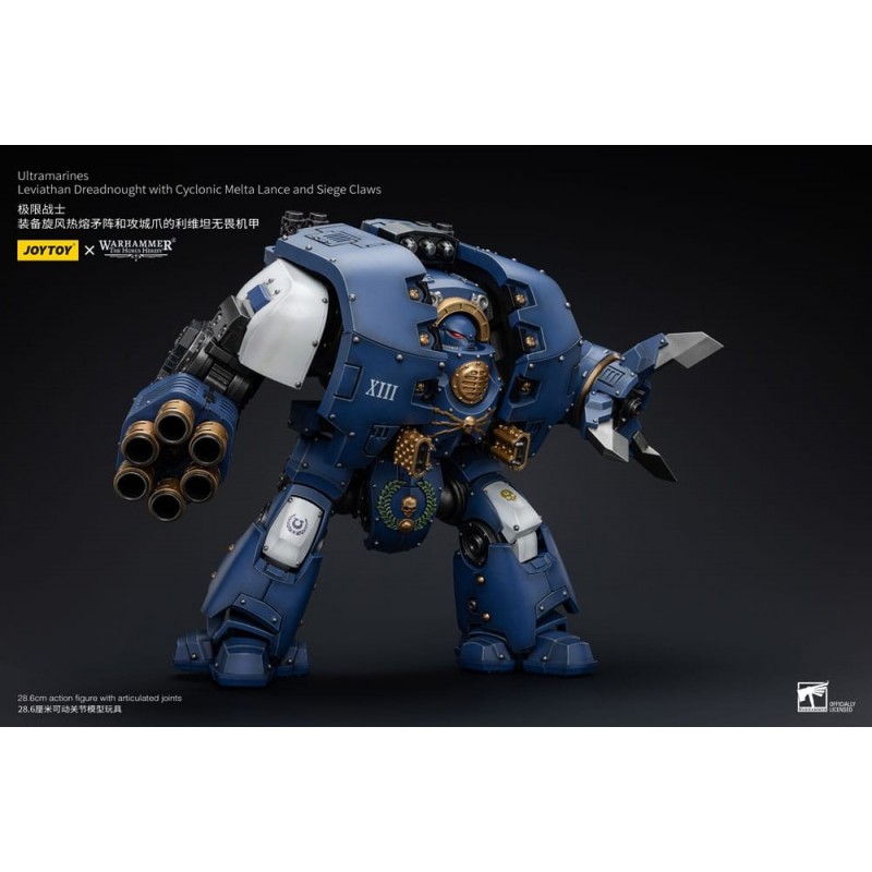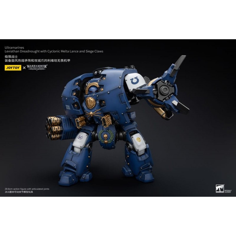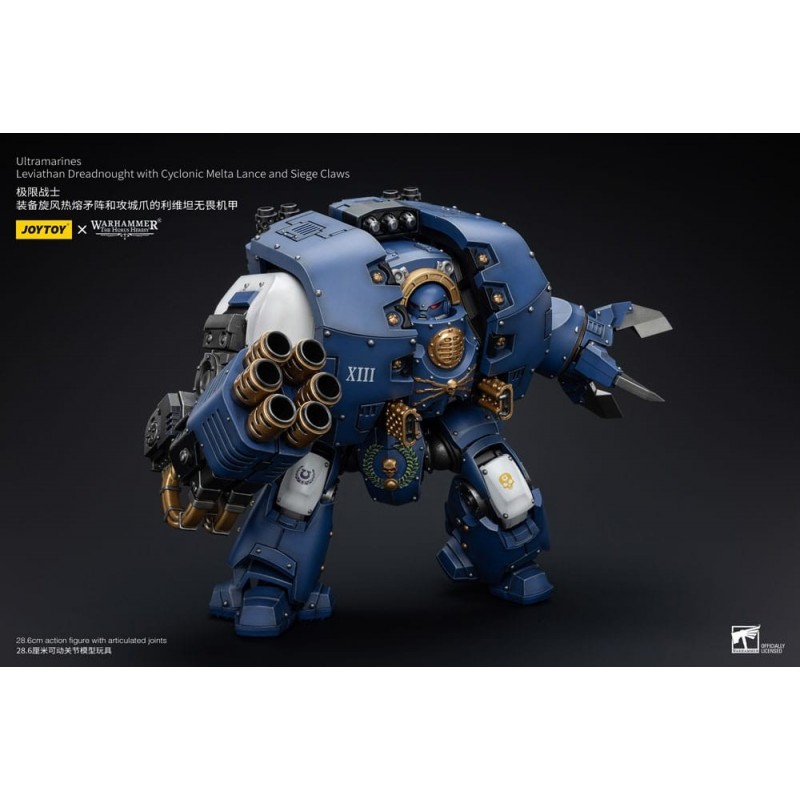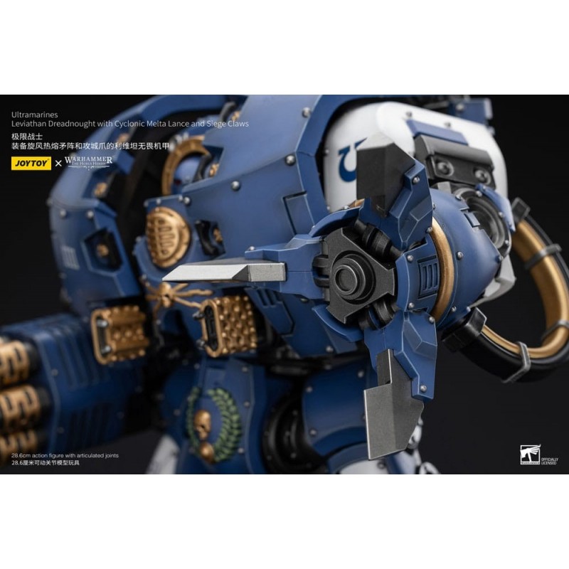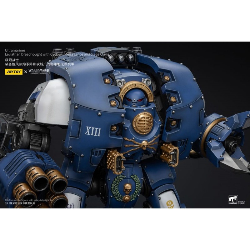 A figura articulada Ultramarines Leviathan Dreadnought é uma peça de colecionador impressionante do universo Warhammer The Horus Heresy. Com aproximadamente 29 cm de altura e 21 cm de largura, este imponente Dreadnought é equipado com uma Cyclonic Melta Lance e garras de cerco intimidantes. Fabricado pela Joy Toy, este produto oficial se destaca por seu detalhe meticuloso e representação fiel dos elementos chave do universo Warhammer. A figura apresenta um acabamento em azul, branco e dourado, refletindo a estética icônica dos Ultramarines. É perfeita para exibição ou como presente extraordinário para entusiastas de Warhammer.