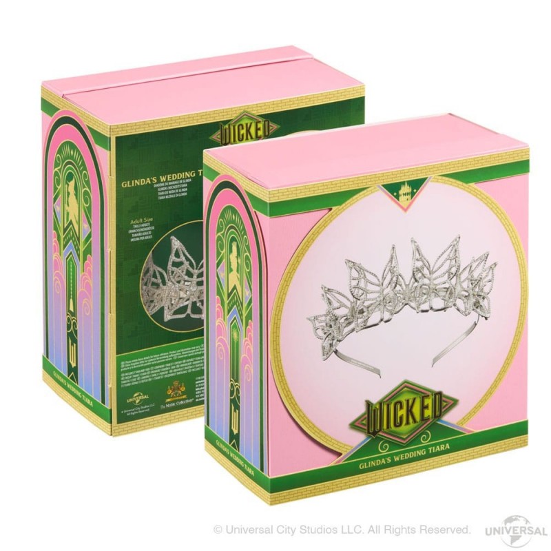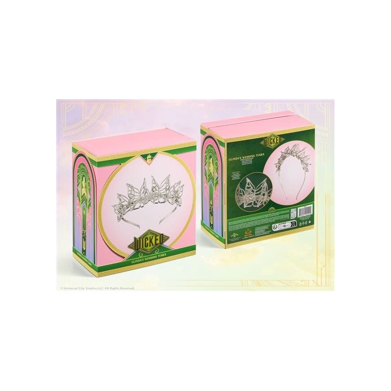 Descubra a réplica oficial da tiara de casamento da Glinda, um item indispensável para os fãs de Wicked. Produzida pela renomada Noble Collection, esta tiara captura a sofisticação da peça original vista nos filmes. Com um design intrincado de borboletas e adornada com cristais brilhantes, esta tiara é um item de coleção incomparável.