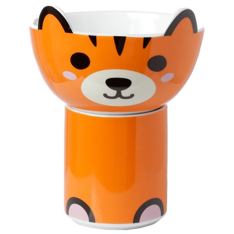 Mas o melhor, sem dúvida, é o seu design fantástico, cheio de cores e desenhado para que possa colocar a taça em cima da caneca para formar o corpo e a cabeça deste tigre engraçado e encantador. Uma verdadeira maravilha , perfeita para o pequeno-almoço dos mais pequenos da casa, mas os adultos também a vão adorar. Vem com uma caneca de 200ml de capacidade e uma tigela de 300ml , ambas seguras para a máquina de lavar louça e microondas.
