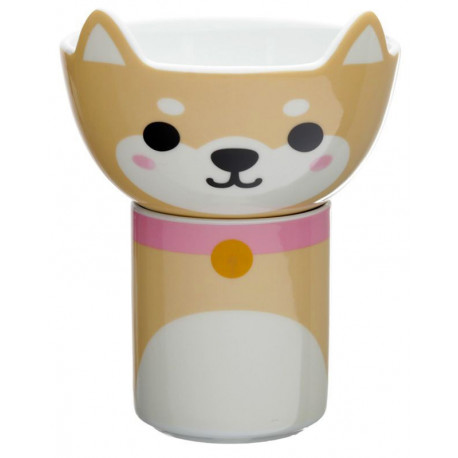 Um conjunto de tigelas e copos feitos de porcelana da melhor qualidade e um design que não poderia ser mais kawaii e adorável, com a forma de um pequeno cão Shiba Inu, tão típico do Japão.